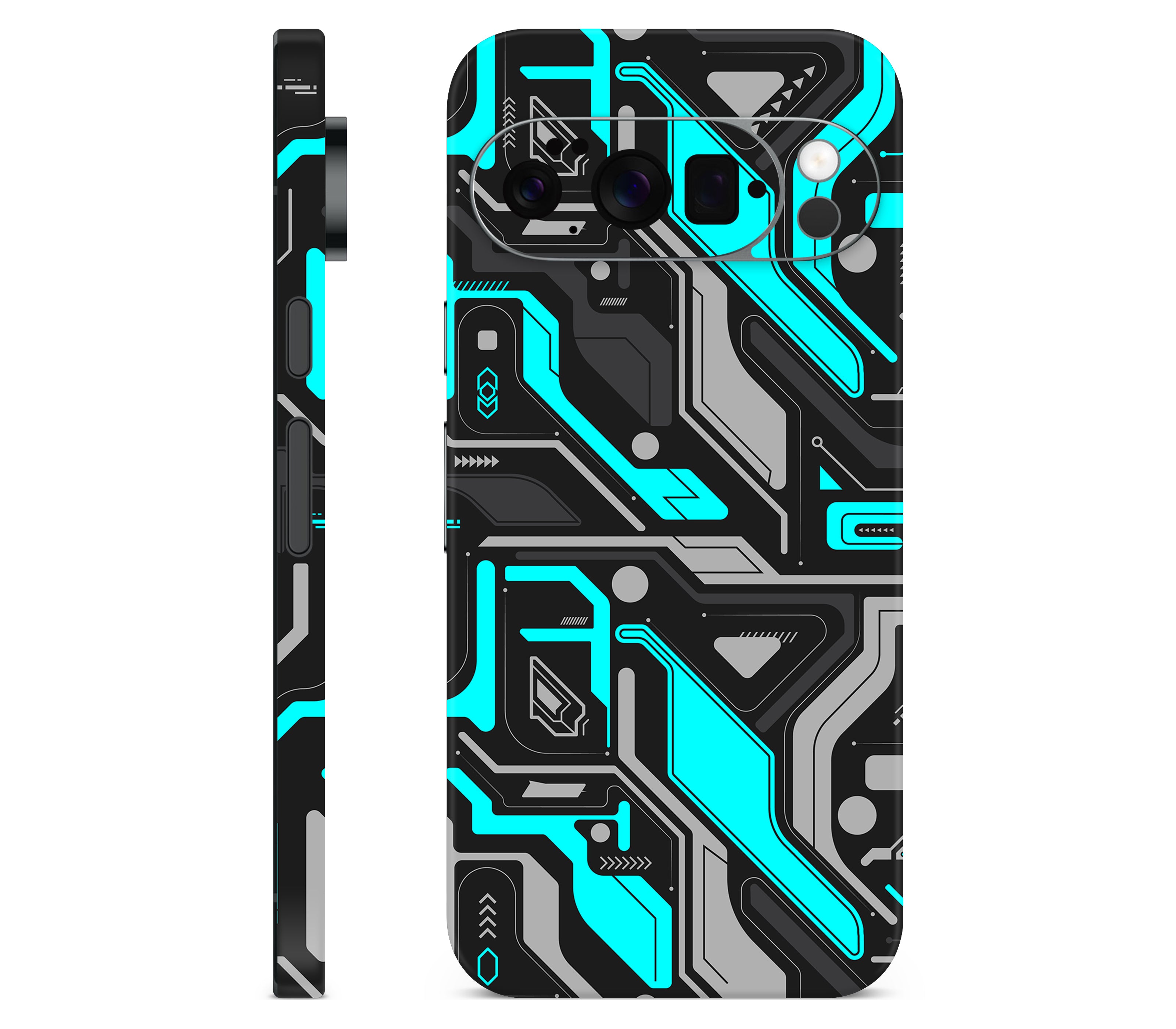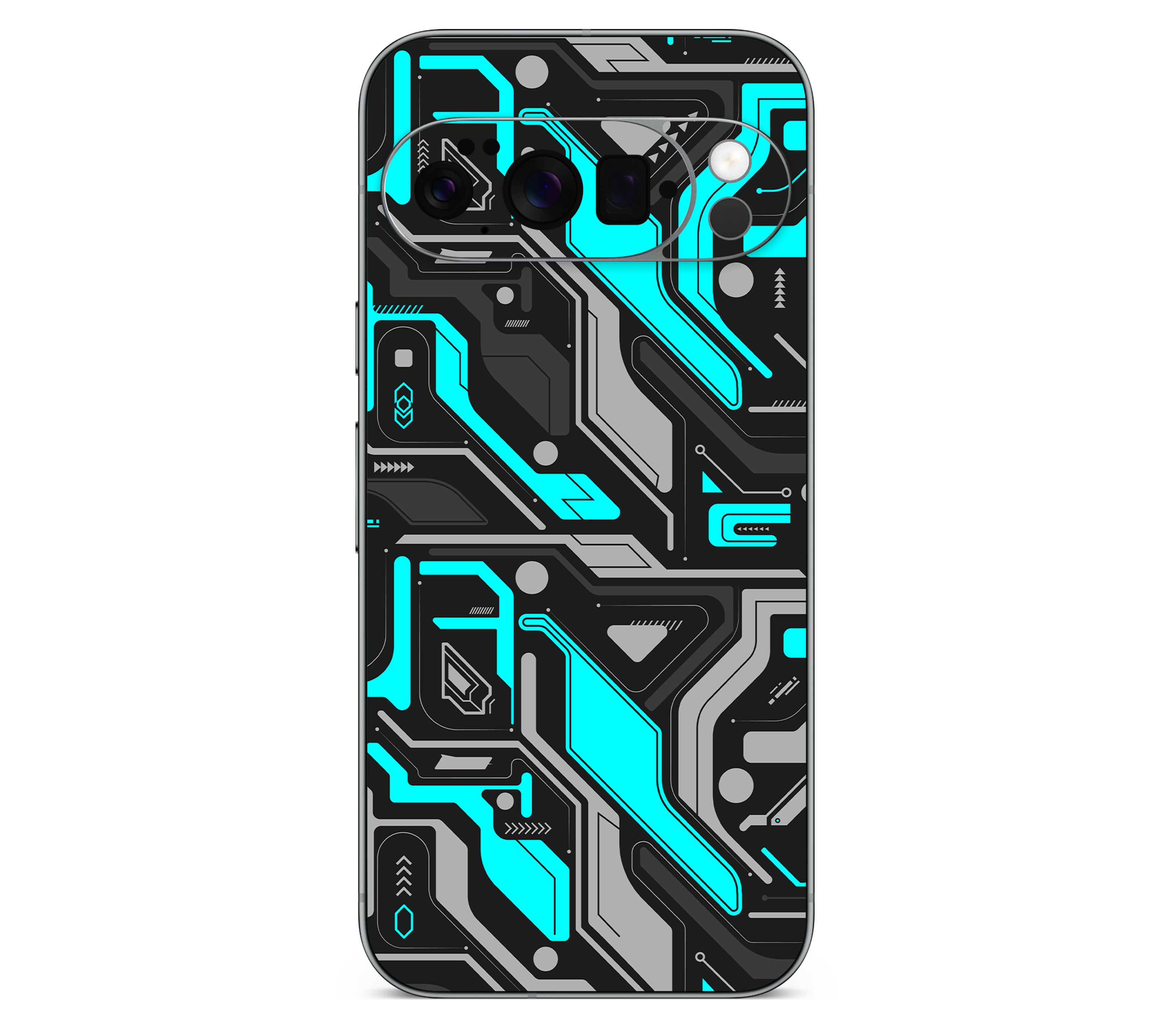 A break in the system. Code Rot (Glitch) is an Google Pixel 10 Pro skin printed on premium 3M vinyl, capturing the exact moment when everything goes wrong and the digital world fractures. Sharp cyan lines cut through the dark like cracks spreading in your screen, their jagged edges forming cybernetic patterns you can now feel under your fingers as the glitch comes alive to the touch. Built for more than looks, it delivers improved grip, ultimate protection, and a scratch-proof, water-resistant finish, giving your device the aura of a system failure frozen in time.