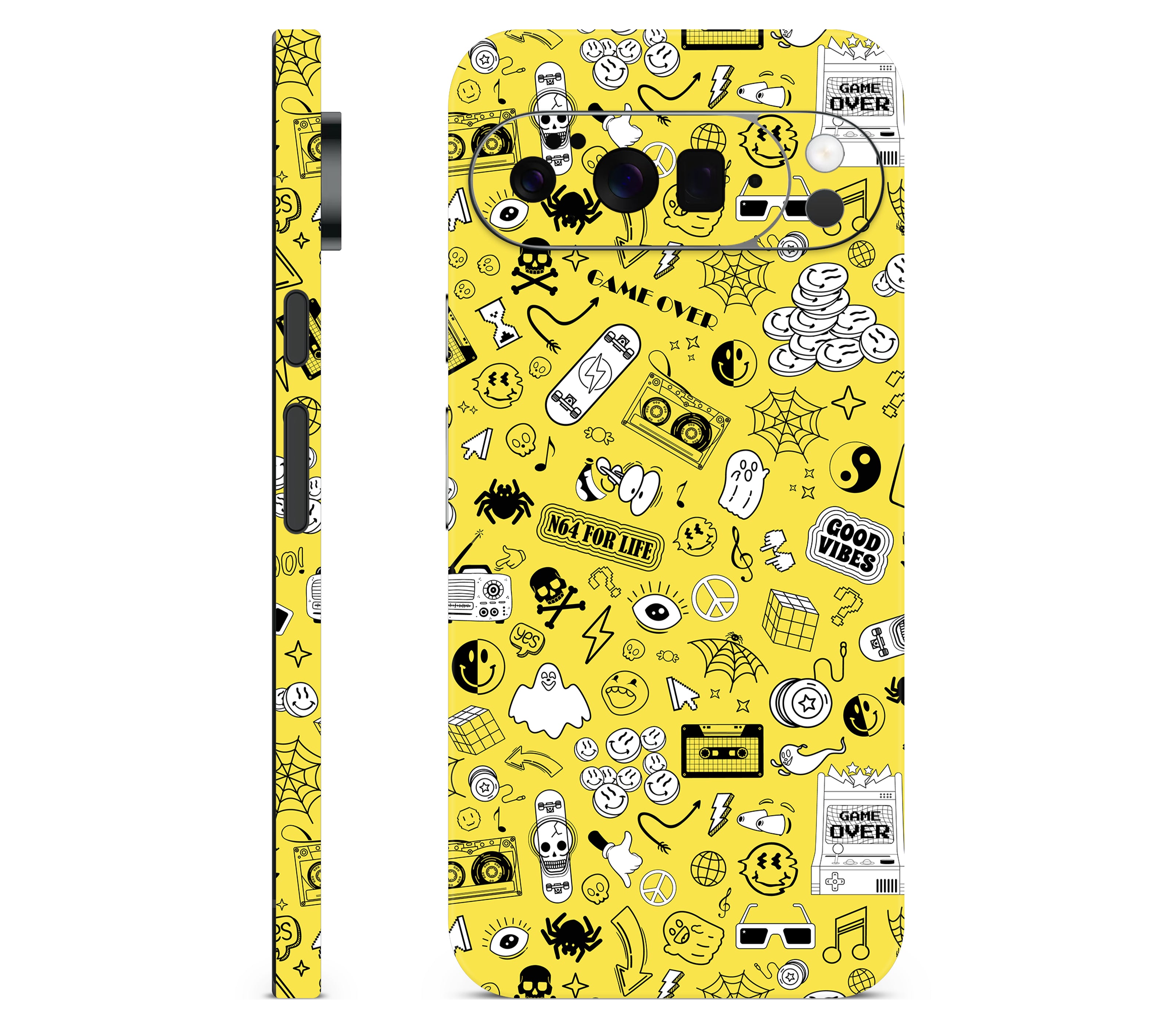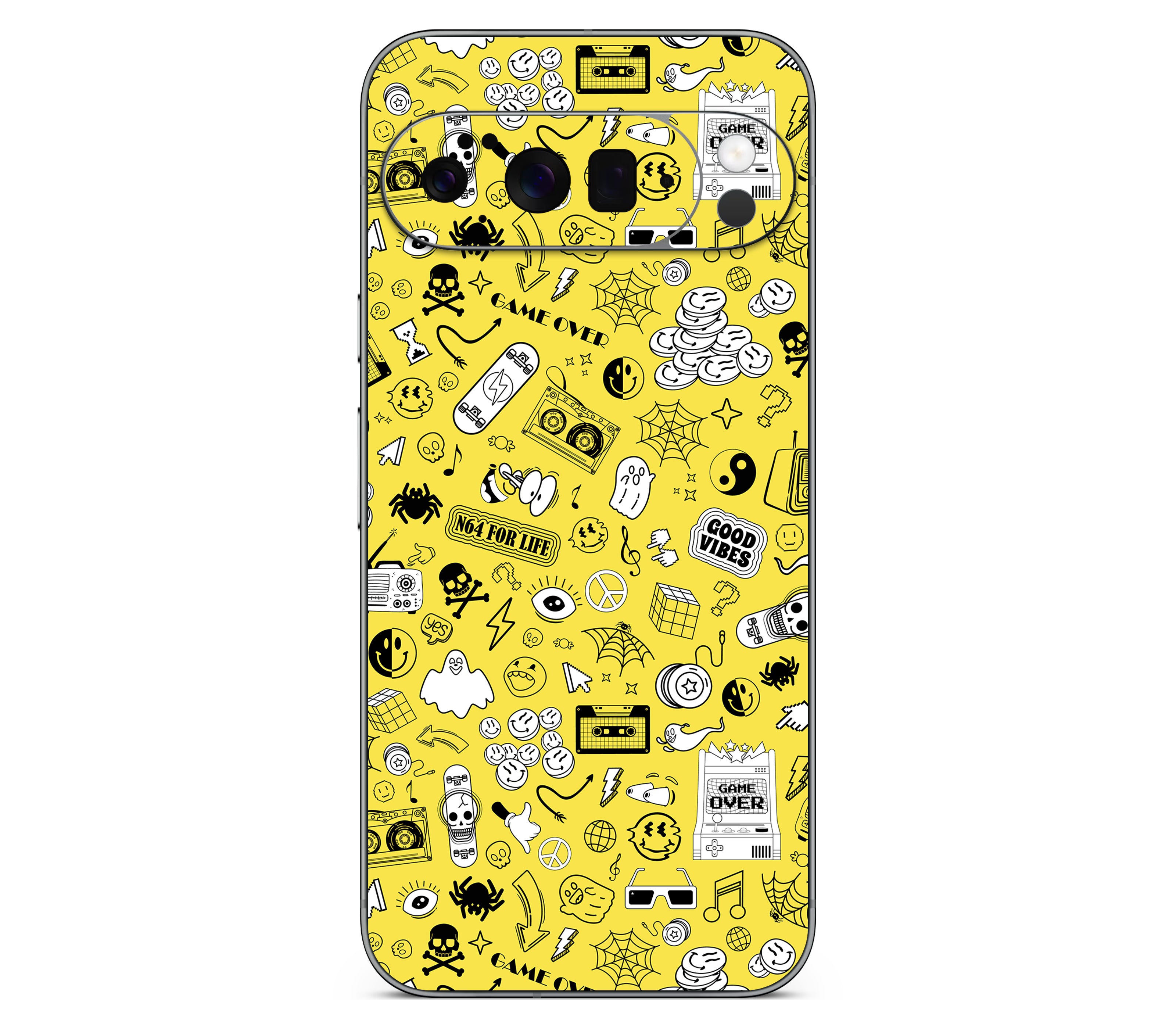 The past is forever cool. Step back in time with 90's Nostalgia. Relive the golden era of mixtapes, skateboards, and arcades with Skinociti’s 3D Textured Skin, the iconic Google Pixel 10 Pro XL Skin. This vibrant collage of smiley faces and game over screens is printed on premium 3M vinyl with raised patterns you can feel, adding improved grip and authentic retro texture. Built for ultimate protection, it’s scratch proof, water resistant, and made precisely for your Google Pixel 10 Pro XL. With colors that stay bold and sharp for years, you’ll carry the rad days of yesteryear in style that lasts.