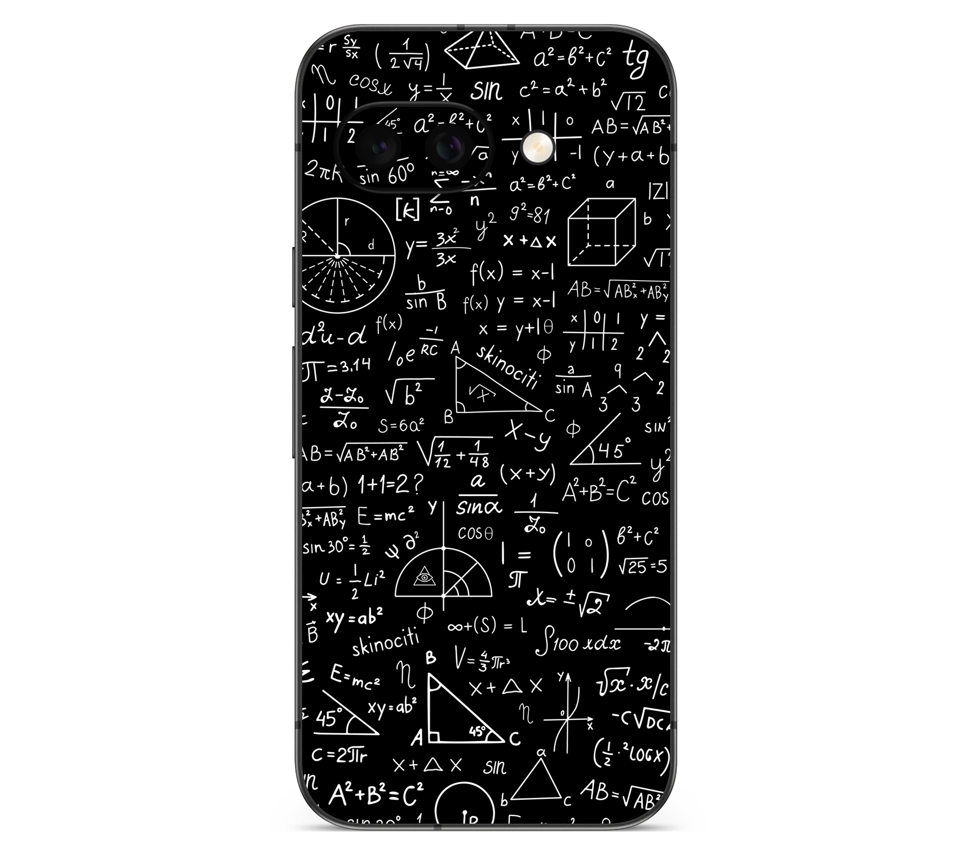 Black-board of infinite equations, a 3D textured skin for Google Pixel 9A.