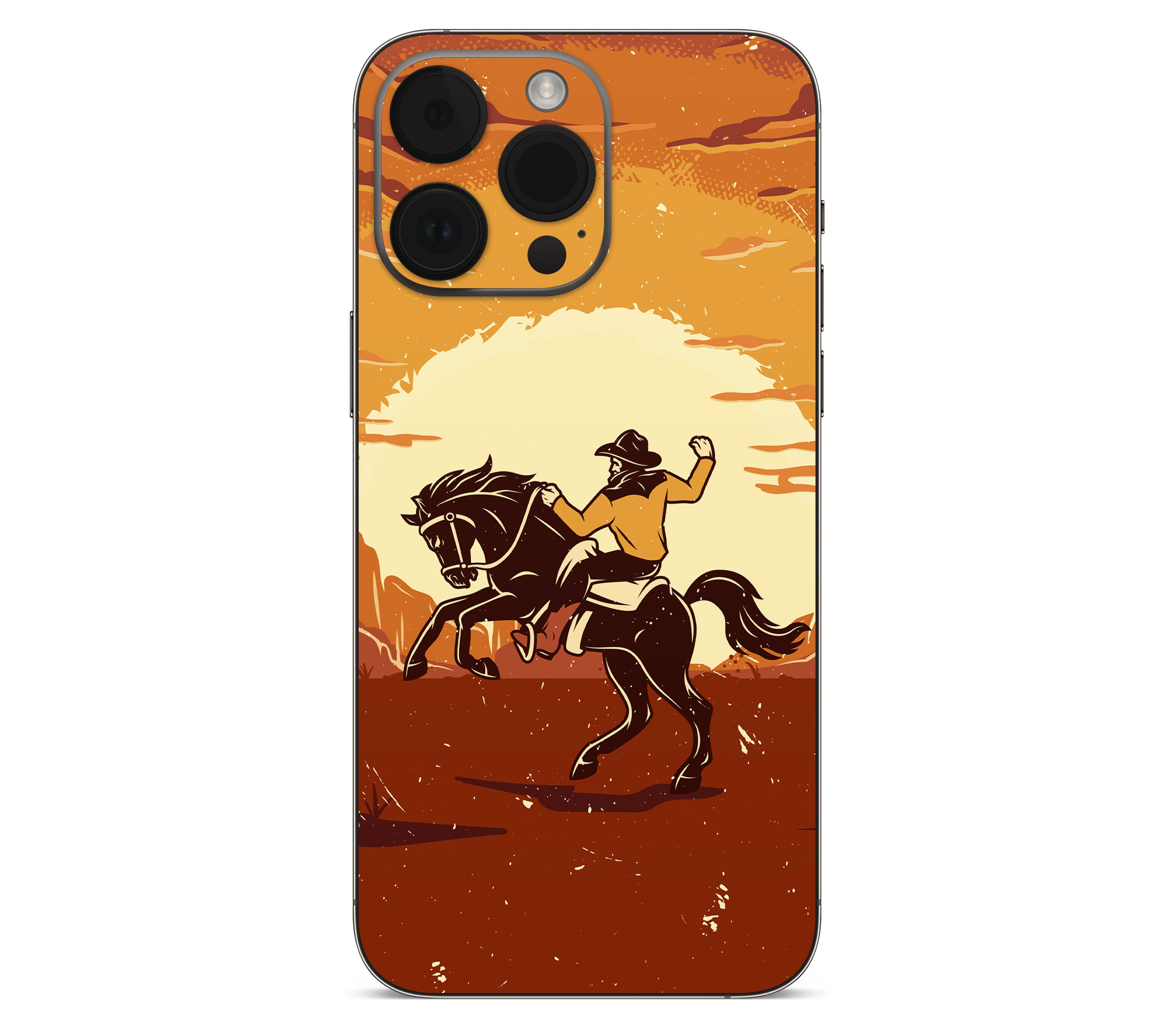 Yeehaw, but ironically. We wanted to capture the authentic rodeo experience: dust, sweat, and broken bones. But our lawyers said no. Instead, you get this iPhone 14 Pro Max skin, printed on premium 3M vinyl, inspired by cowboy grit without the risk of getting thrown off a horse. With its 3D textured finish, you can feel the rugged desert ground and motion of the ride etched into the design, giving your device improved grip, ultimate protection, and durability that’s both scratch-proof and water-resistant. Saddle up your phone, this is all rodeo, no ambulance.