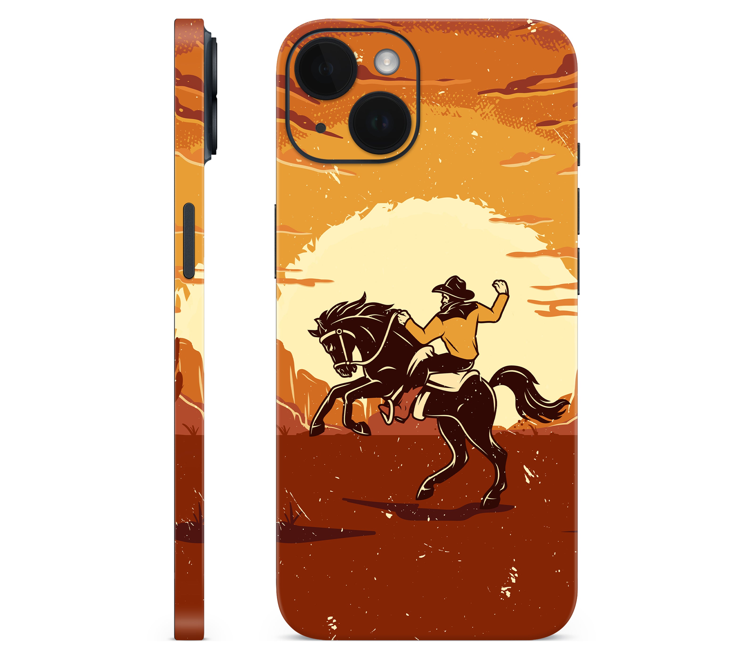 Yeehaw, but ironically. We wanted to capture the authentic rodeo experience: dust, sweat, and broken bones. But our lawyers said no. Instead, you get this iPhone 15 Plus skin, printed on premium 3M vinyl, inspired by cowboy grit without the risk of getting thrown off a horse. With its 3D textured finish, you can feel the rugged desert ground and motion of the ride etched into the design, giving your device improved grip, ultimate protection, and durability that’s both scratch-proof and water-resistant. Saddle up your phone, this is all rodeo, no ambulance.