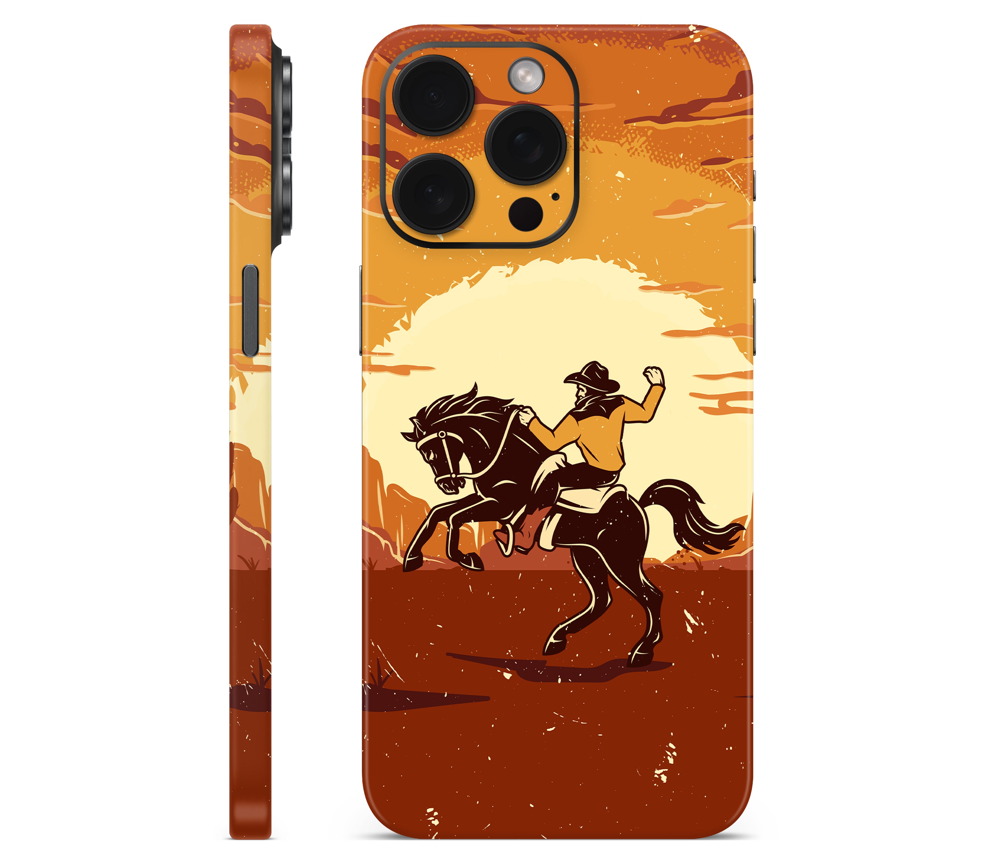 Yeehaw, but ironically. We wanted to capture the authentic rodeo experience: dust, sweat, and broken bones. But our lawyers said no. Instead, you get this iPhone 15 Pro skin, printed on premium 3M vinyl, inspired by cowboy grit without the risk of getting thrown off a horse. With its 3D textured finish, you can feel the rugged desert ground and motion of the ride etched into the design, giving your device improved grip, ultimate protection, and durability that’s both scratch-proof and water-resistant. Saddle up your phone, this is all rodeo, no ambulance.