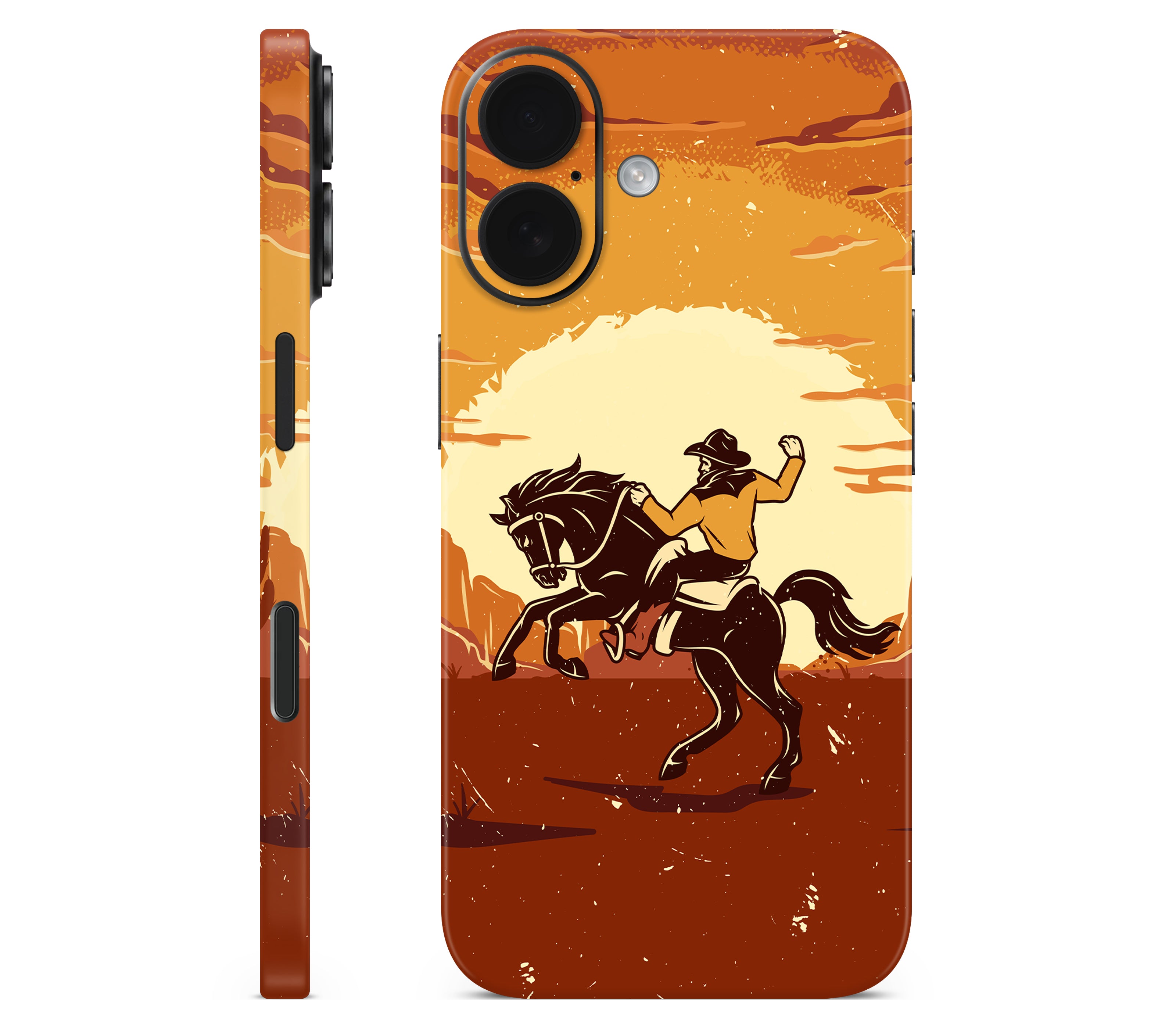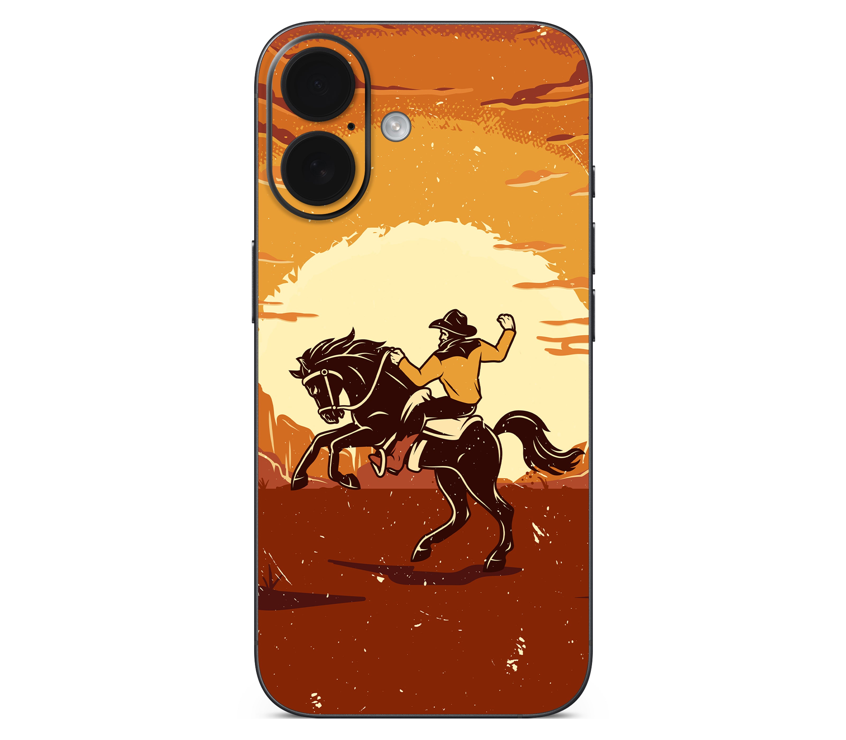Yeehaw, but ironically. We wanted to capture the authentic rodeo experience: dust, sweat, and broken bones. But our lawyers said no. Instead, you get this iPhone 16 skin, printed on premium 3M vinyl, inspired by cowboy grit without the risk of getting thrown off a horse. With its 3D textured finish, you can feel the rugged desert ground and motion of the ride etched into the design, giving your device improved grip, ultimate protection, and durability that’s both scratch-proof and water-resistant. Saddle up your phone, this is all rodeo, no ambulance.