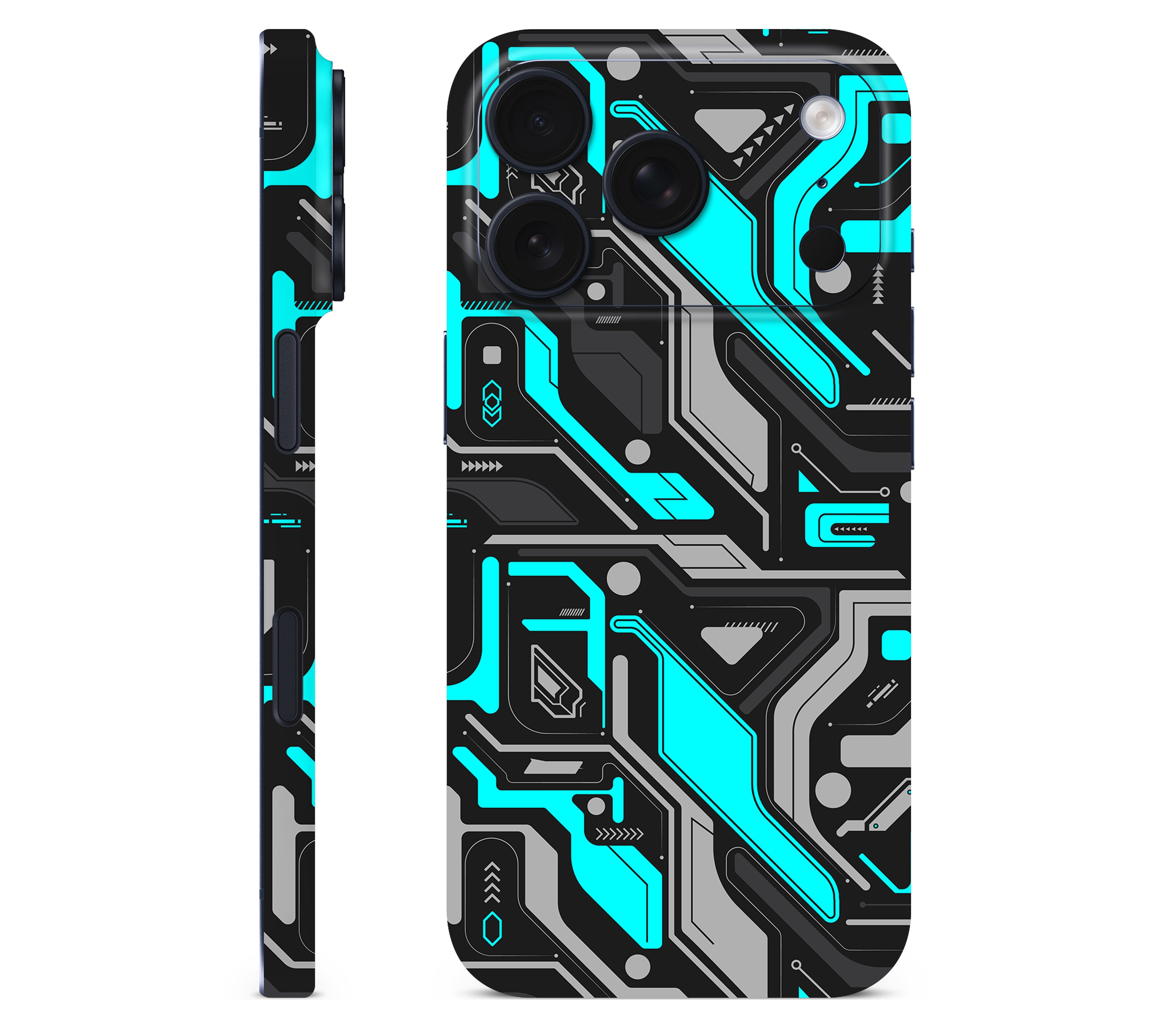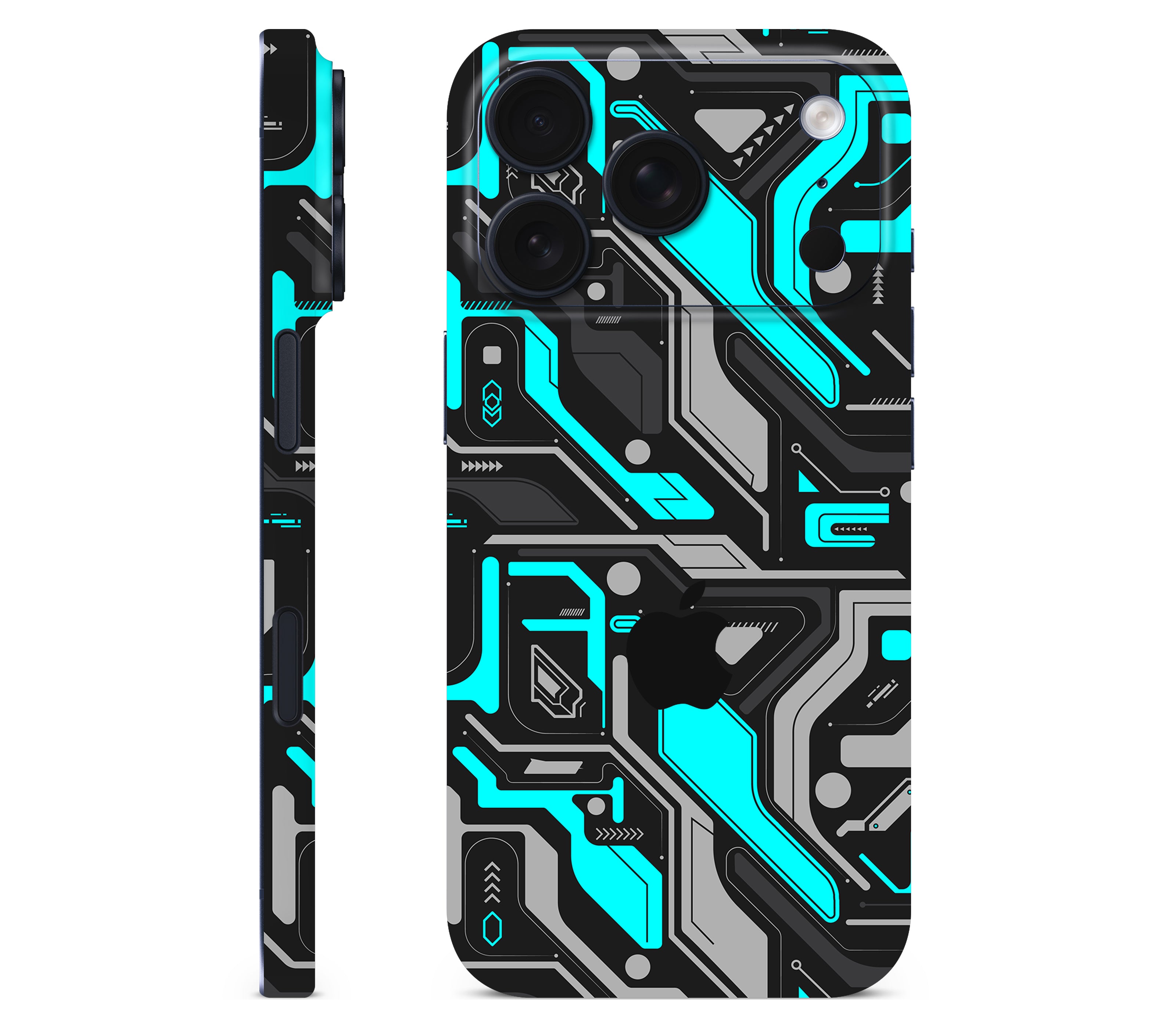 A break in the system. Code Rot (Glitch) is an iPhone 17 Pro skin printed on premium 3M vinyl, capturing the exact moment when everything goes wrong and the digital world fractures. Sharp cyan lines cut through the dark like cracks spreading in your screen, their jagged edges forming cybernetic patterns you can now feel under your fingers as the glitch comes alive to the touch. Built for more than looks, it delivers improved grip, ultimate protection, and a scratch-proof, water-resistant finish, giving your device the aura of a system failure frozen in time.