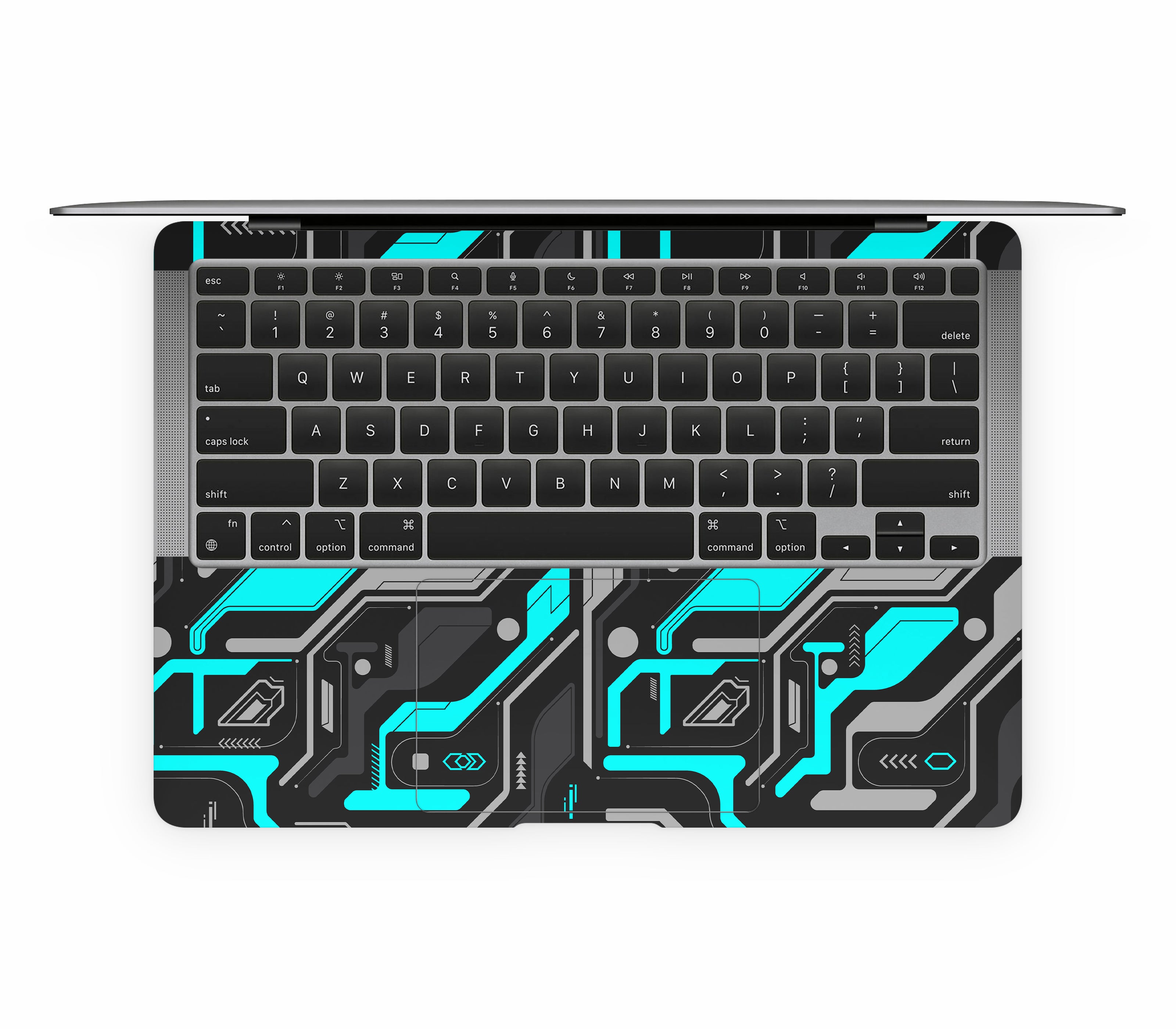 A break in the system. Code Rot (Glitch) is an MacBook Air 13" (2020, Intel) skin printed on premium 3M vinyl, capturing the exact moment when everything goes wrong and the digital world fractures. Sharp cyan lines cut through the dark like cracks spreading in your screen, their jagged edges forming cybernetic patterns you can now feel under your fingers as the glitch comes alive to the touch. Built for more than looks, it delivers improved grip, ultimate protection, and a scratch-proof, water-resistant finish, giving your device the aura of a system failure frozen in time.