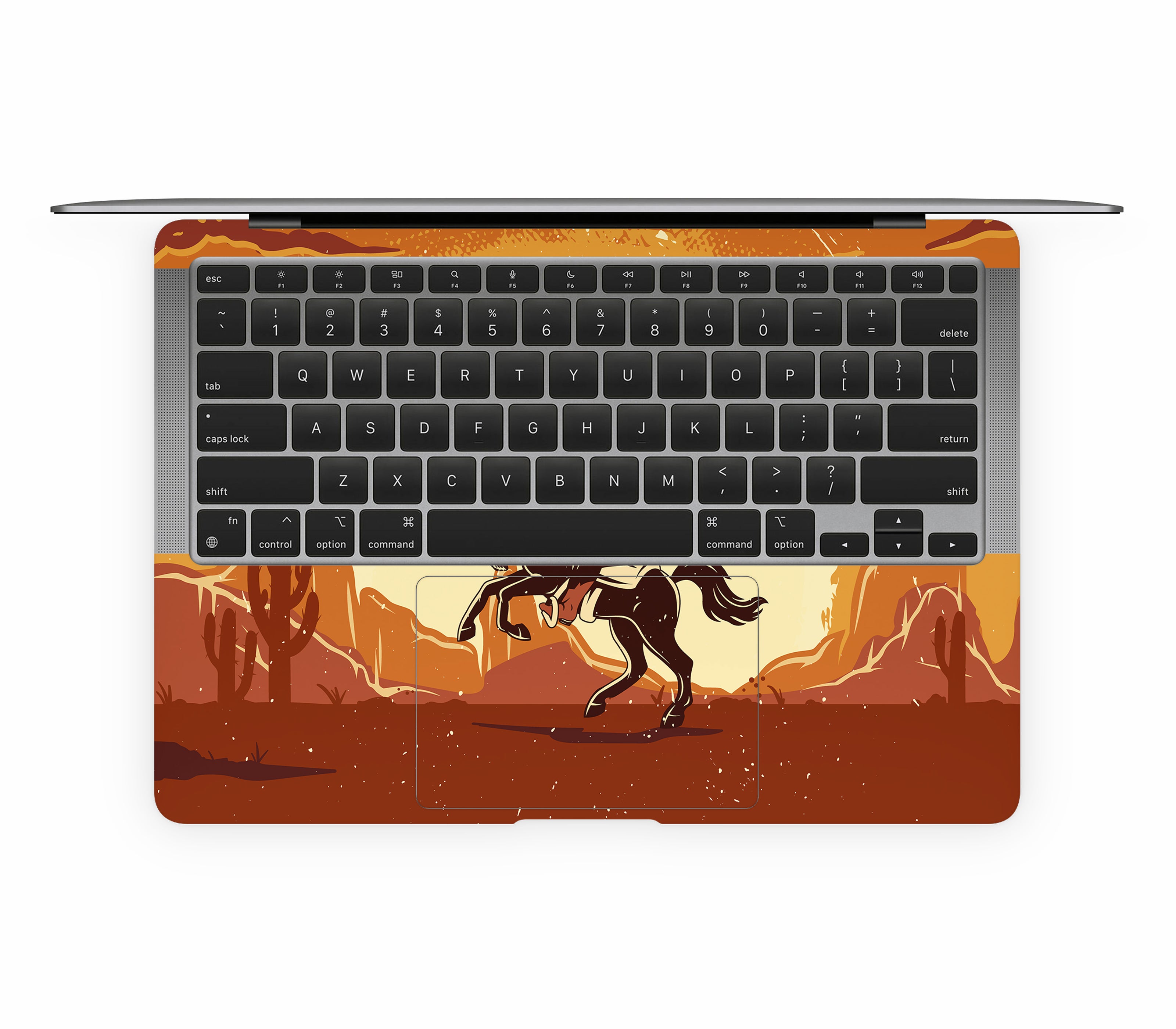 Yeehaw, but ironically. We wanted to capture the authentic rodeo experience: dust, sweat, and broken bones. But our lawyers said no. Instead, you get this MacBook Air 13" (2020, Intel) skin, printed on premium 3M vinyl, inspired by cowboy grit without the risk of getting thrown off a horse. With its 3D textured finish, you can feel the rugged desert ground and motion of the ride etched into the design, giving your device improved grip, ultimate protection, and durability that’s both scratch-proof and water-resistant. Saddle up your {device}, this is all rodeo, no ambulance.