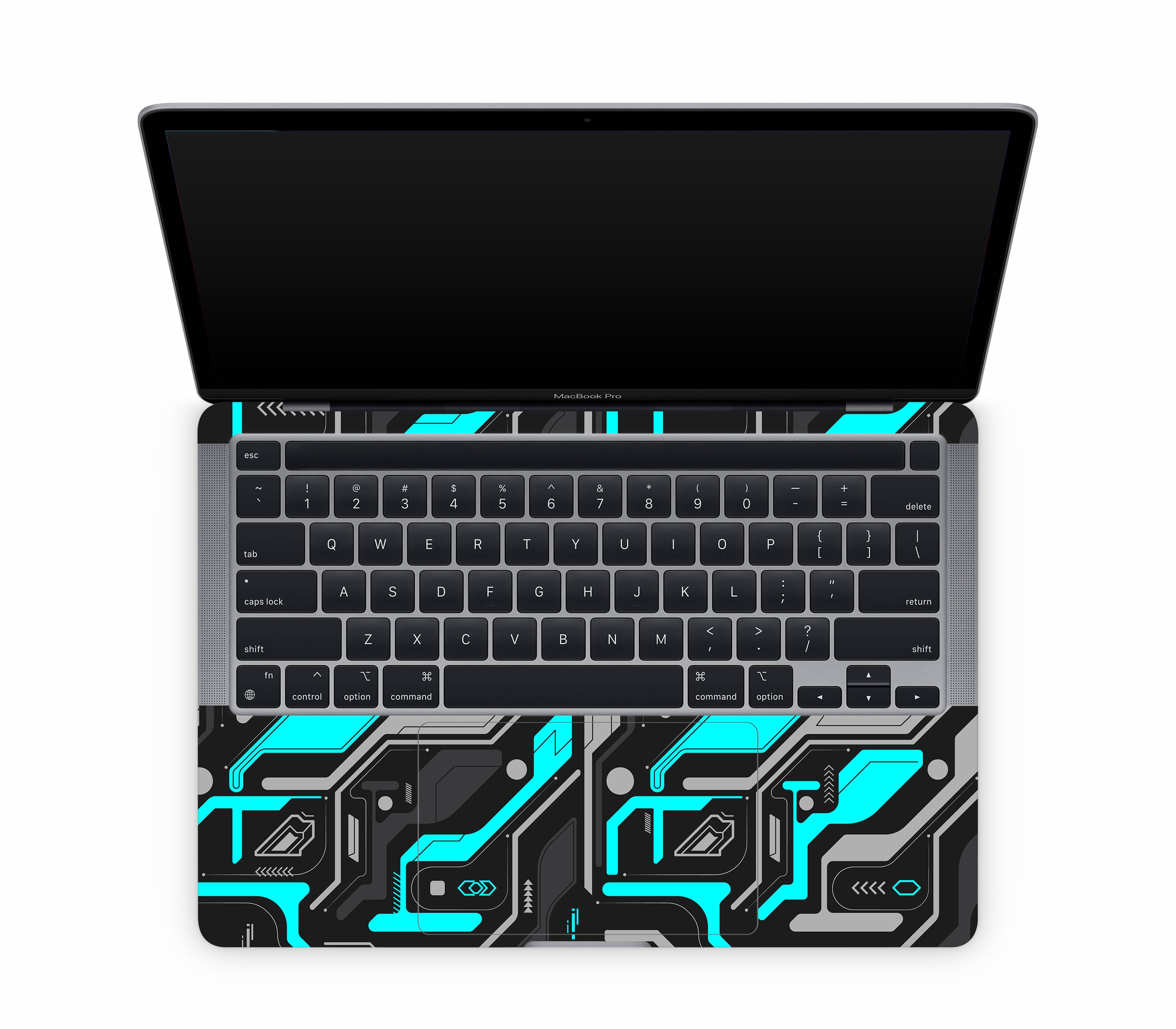 A break in the system. Code Rot (Glitch) is an MacBook Pro 13" (2022, M2) skin printed on premium 3M vinyl, capturing the exact moment when everything goes wrong and the digital world fractures. Sharp cyan lines cut through the dark like cracks spreading in your screen, their jagged edges forming cybernetic patterns you can now feel under your fingers as the glitch comes alive to the touch. Built for more than looks, it delivers improved grip, ultimate protection, and a scratch-proof, water-resistant finish, giving your device the aura of a system failure frozen in time.