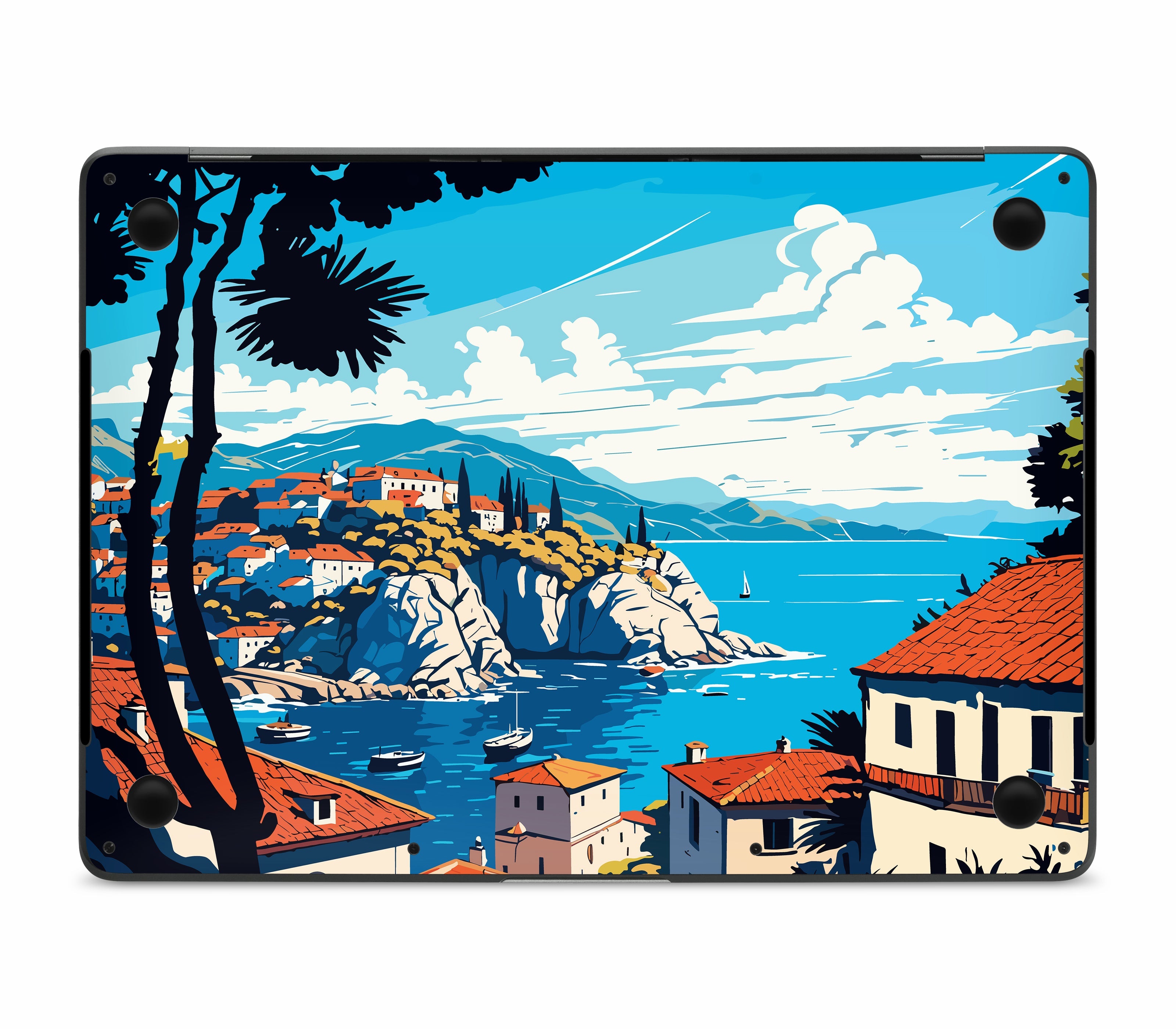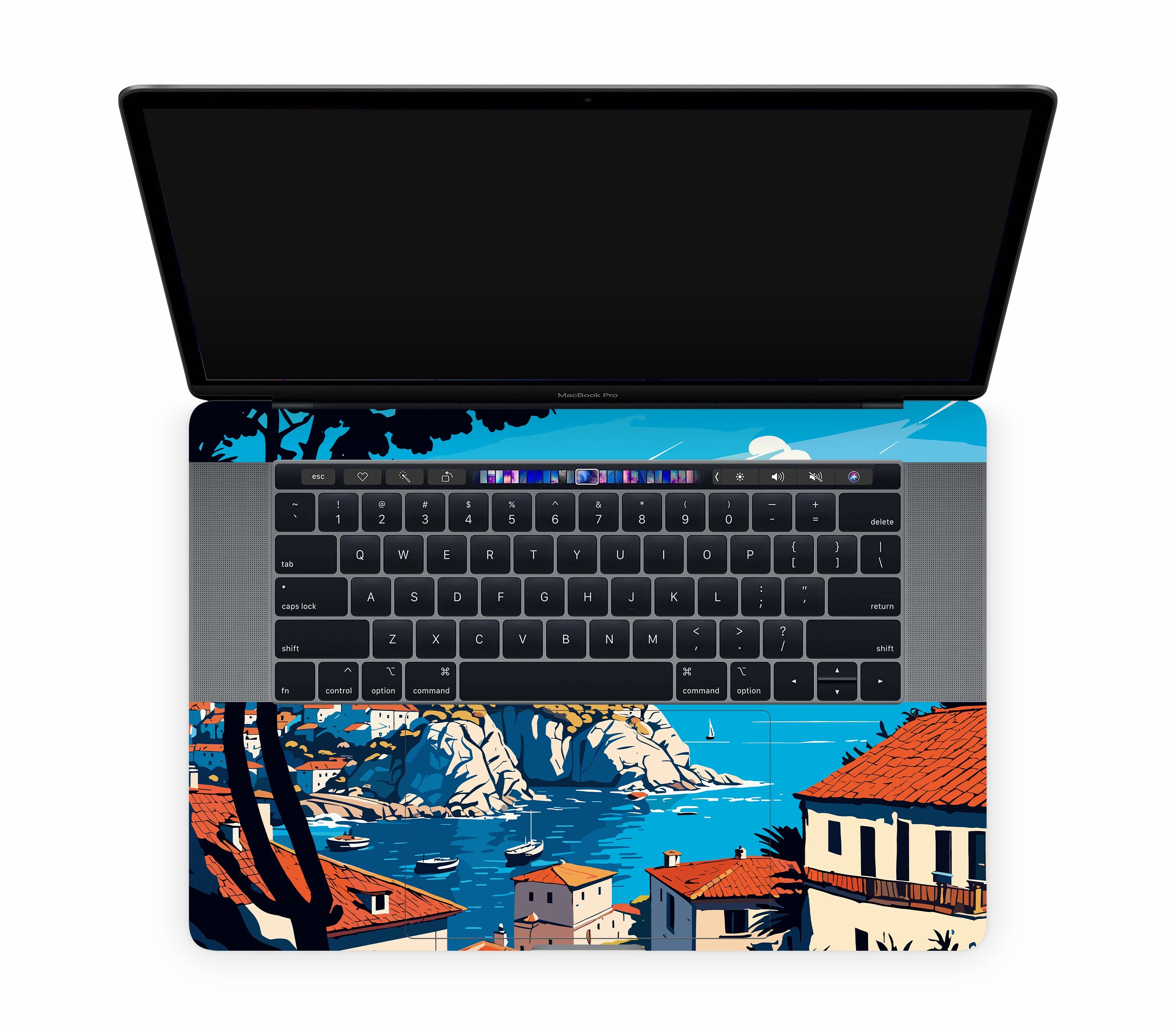 Let us rob you for a sec and put you in the glaze of a Mediterranean daydream. Picture red-tiled rooftops, sunlit cliffs, and boats bobbing lazily in a sapphire sea with a 3D Textured Skin printed on premium 3M vinyl with raised patterns you can feel. It adds improved grip and delivers ultimate protection, staying scratch proof and water resistant, made precisely for MacBook Pro 15" (2017, Touch Bar). A mini vacation, ready to whisk you away to a serene seaside haven — no passport required.