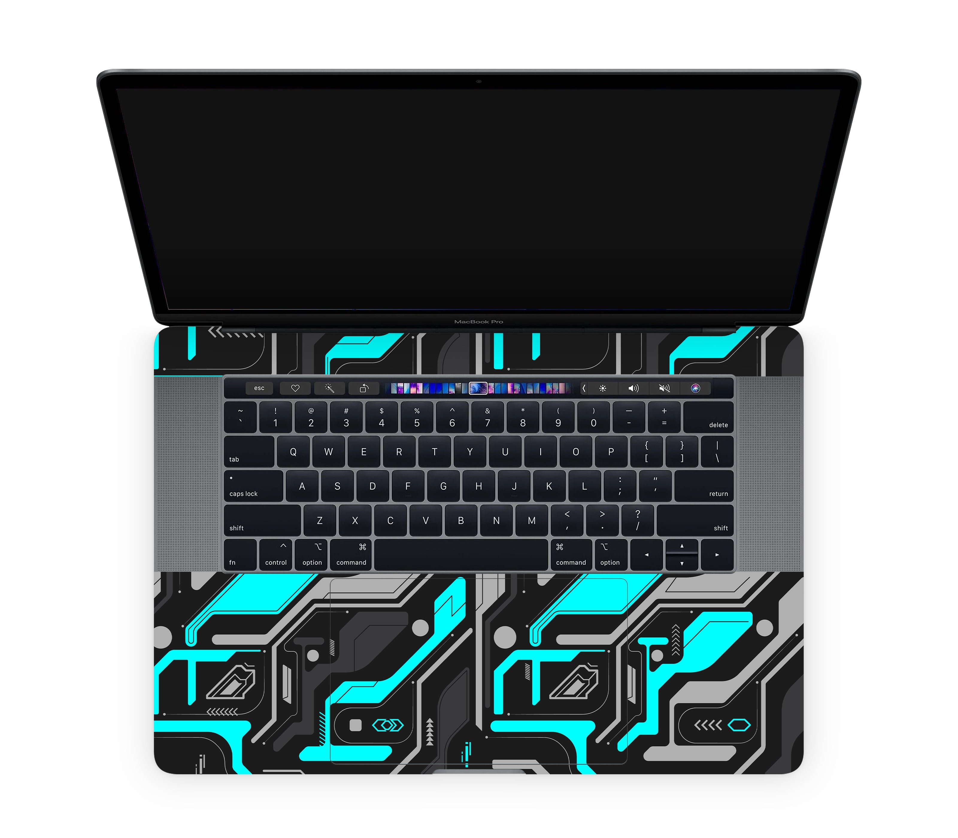 A break in the system. Code Rot (Glitch) is an MacBook Pro 15" (2019, Touch Bar) skin printed on premium 3M vinyl, capturing the exact moment when everything goes wrong and the digital world fractures. Sharp cyan lines cut through the dark like cracks spreading in your screen, their jagged edges forming cybernetic patterns you can now feel under your fingers as the glitch comes alive to the touch. Built for more than looks, it delivers improved grip, ultimate protection, and a scratch-proof, water-resistant finish, giving your device the aura of a system failure frozen in time.