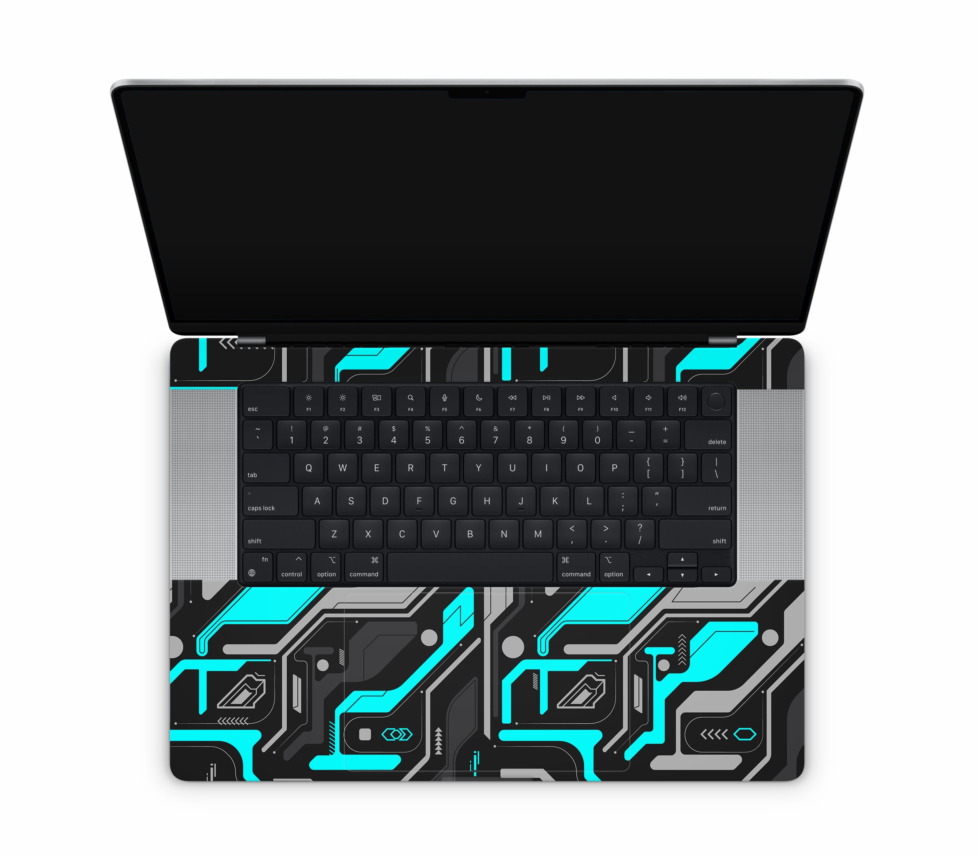A break in the system. Code Rot (Glitch) is an MacBook Pro 16" (2022, M2) skin printed on premium 3M vinyl, capturing the exact moment when everything goes wrong and the digital world fractures. Sharp cyan lines cut through the dark like cracks spreading in your screen, their jagged edges forming cybernetic patterns you can now feel under your fingers as the glitch comes alive to the touch. Built for more than looks, it delivers improved grip, ultimate protection, and a scratch-proof, water-resistant finish, giving your device the aura of a system failure frozen in time.