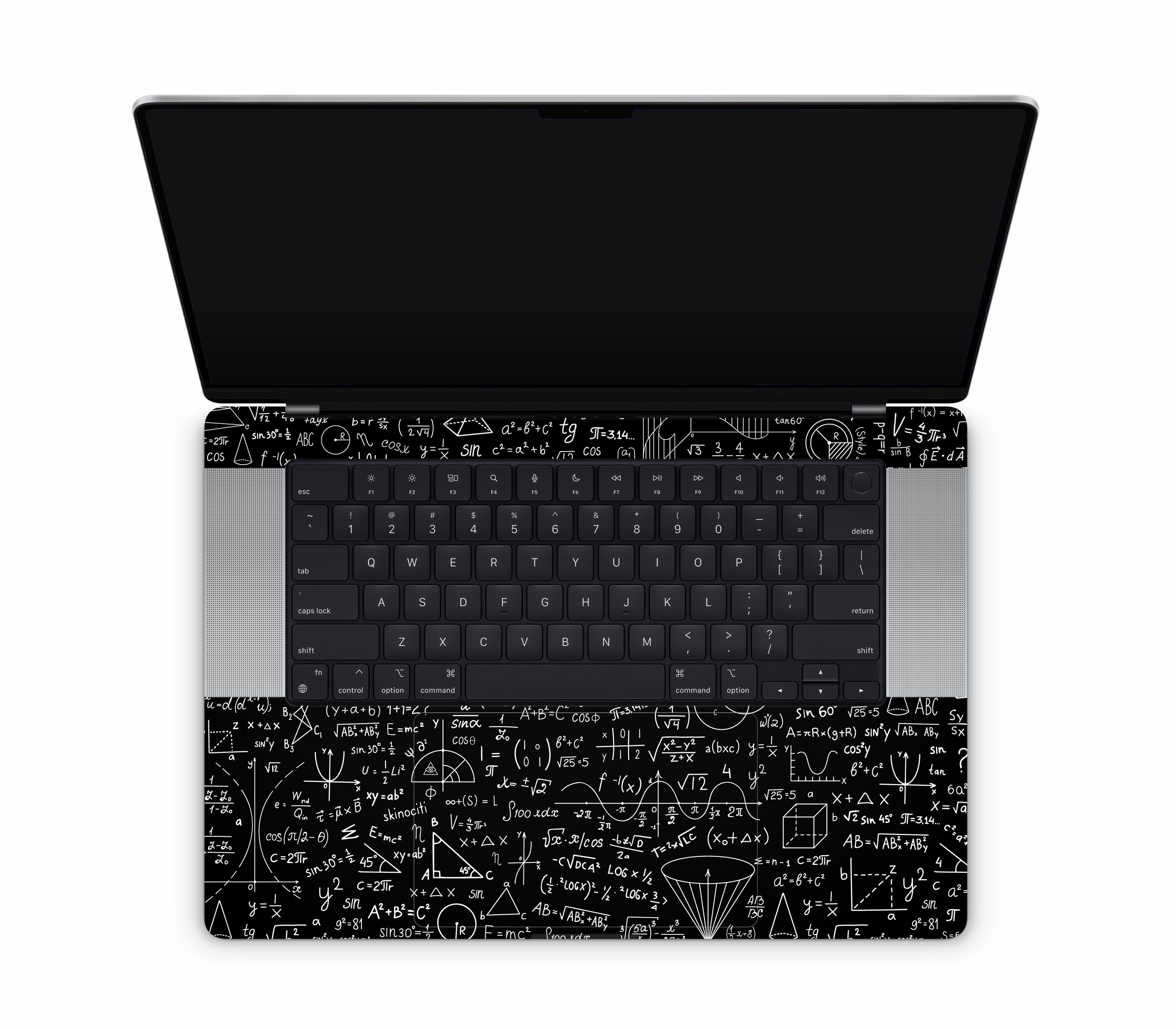 Black-board of infinite equations, a 3D textured skin for MacBook Pro 16" (2022, M2).