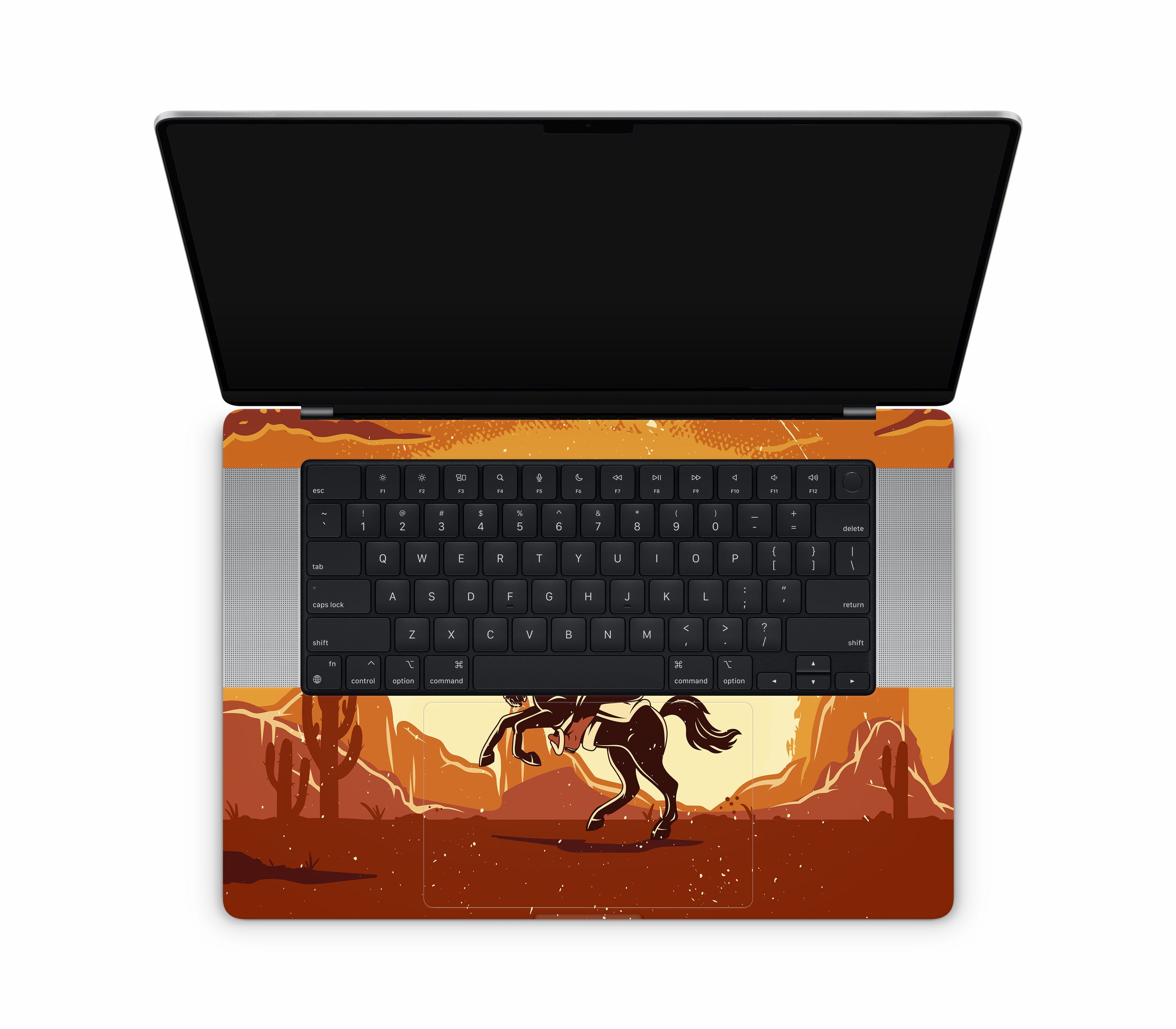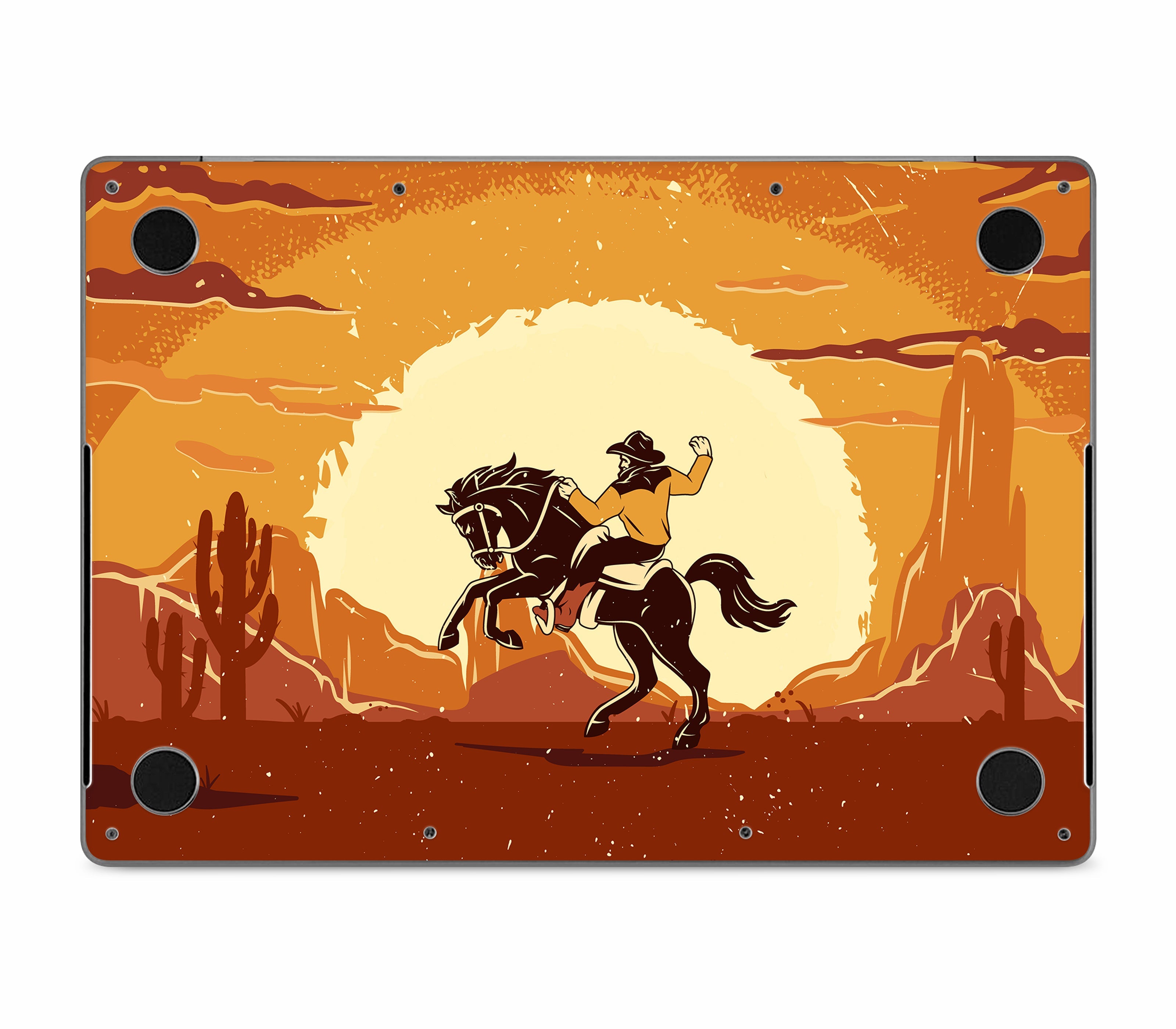 Yeehaw, but ironically. We wanted to capture the authentic rodeo experience: dust, sweat, and broken bones. But our lawyers said no. Instead, you get this MacBook Pro 16" (2024, M4) skin, printed on premium 3M vinyl, inspired by cowboy grit without the risk of getting thrown off a horse. With its 3D textured finish, you can feel the rugged desert ground and motion of the ride etched into the design, giving your device improved grip, ultimate protection, and durability that’s both scratch-proof and water-resistant. Saddle up your {device}, this is all rodeo, no ambulance.